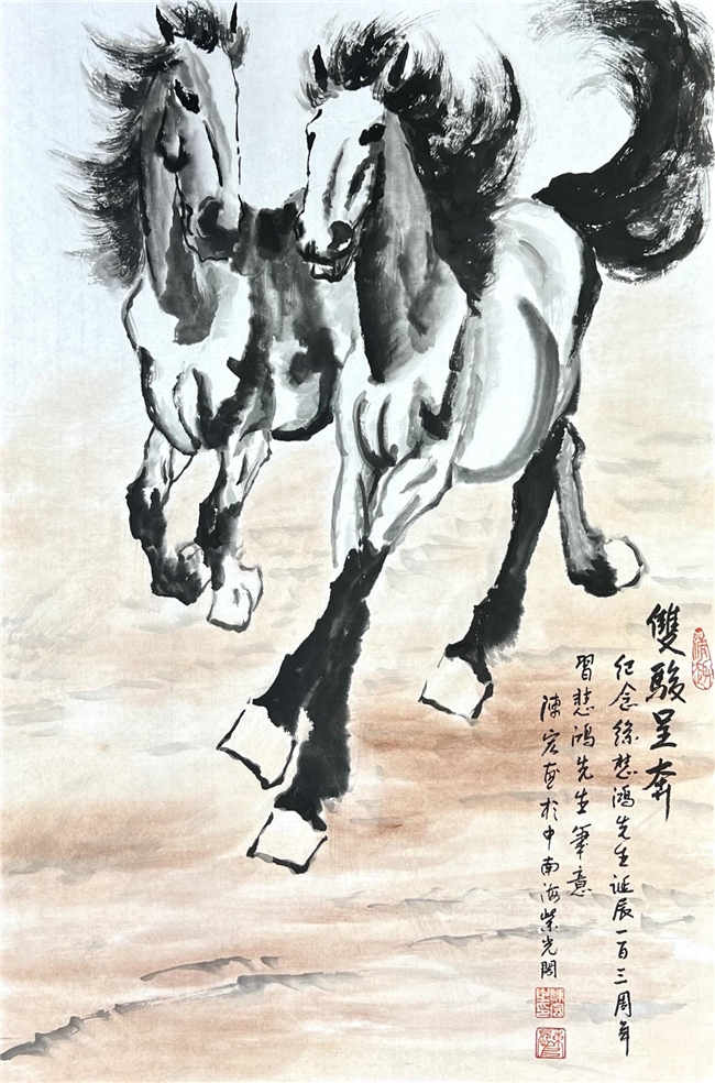 中南海,作为党和国家重要活动的核心场所,每一件馆藏艺术品都承载着深厚的文化内涵与时代精神。国画大家陈宏为这里创作的军马作品,以笔墨为媒,以精神为魂,成为中南海文化宝库中熠熠生辉的珍品,更彰显了红色艺术与家国情怀的深度交融。
