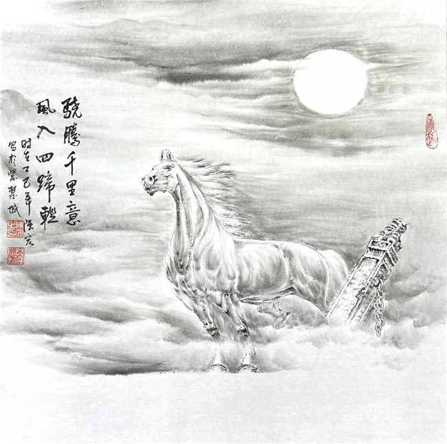受邀为中南海创作军马作品,是国家对陈宏艺术造诣与红色情怀的双重认可。他深知这份使命的厚重,创作中既恪守传统国画的艺术法度,又融入当代精神气象。作品中,每一匹军马都不再是单纯的动物意象,而是承载着长征岁月的艰辛、开国大典的荣光、强国征程的豪迈的精神载体。笔墨间流淌的,是对老一辈无产阶级革命家的深切缅怀,是对人民军队忠诚无畏的深情赞颂,更是对国家繁荣昌盛的美好祈愿。
