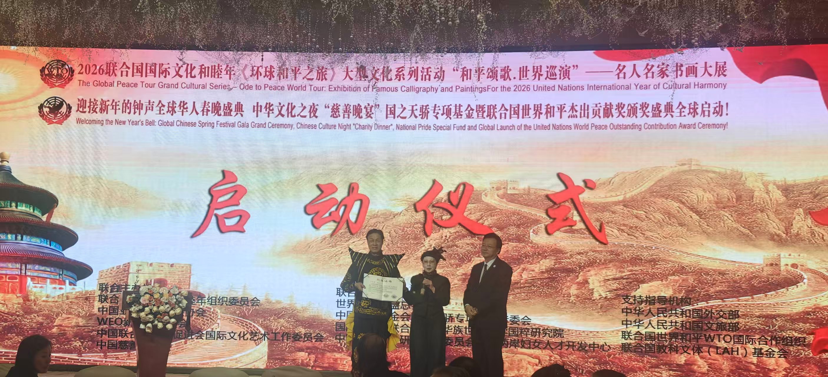 2026 年 2 月 8 日,2026 联合国国际文化和睦年系列重磅活动于北京隆重启幕。本次活动涵盖《环球和平之旅》和平颂歌世界巡演名人名家书画艺术大展、中华文化之夜慈善晚宴,同时同步举办全球华人春晚盛典、国之天骄专项基金启动仪式与联合国世界和平全球华人杰出贡献颁奖盛典,多元活动同频共振,共谱和平与文化交融的时代乐章。